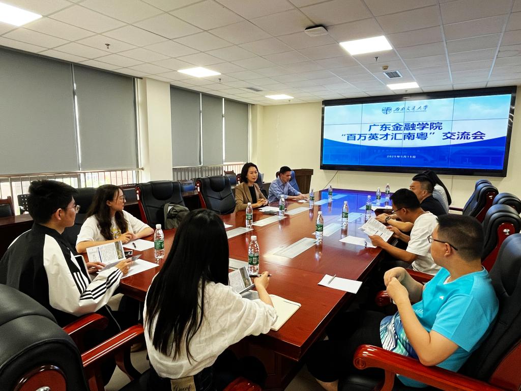 在西南交通大学数学学院访问期间,工作组受到该院副院长王璐教授及党委副书记黄祥的热情接待。座谈会上,双方聚焦金融大数据等前沿交叉学科建设展开深度研讨,就创新型人才培养体系构建、学科专业优化路径等议题交换建设性意见。期间,初可佳副校长一行与该校应聘的优秀博士生进行面对面交流,重点介绍了广东金融学院人才强校战略,详细解读了高层次人才引进专项政策及配套保障措施。
